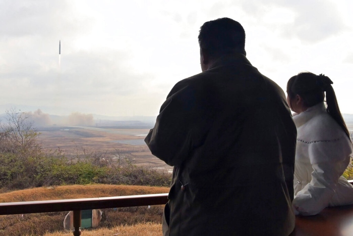 Los medios de comunicación estatales de Corea del Norte reportaron el sábado que Kim había observado el lanzamiento de su nuevo tipo de misil balístico intercontinental con su esposa Ri Sol Ju, su “querida hija” y otros funcionarios el día anterior. Kim dijo que el lanzamiento del misil Hwasong-17 —el misil con capacidad nuclear de mayor alcance de Corea del Norte— demostraba que tiene un arma fiable para contener las amenazas militares de Estados Unidos.