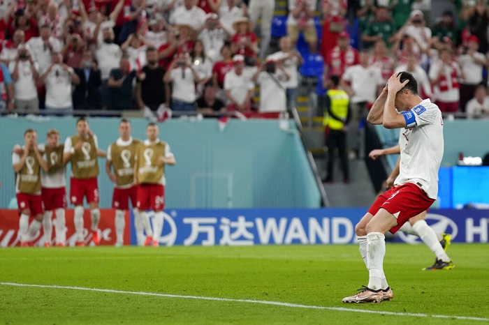 Lewandowski, de 34 años y goleador histórico de la selección polaca, sigue sin poder marcar en una Copa Mundial.