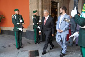 El Presidente López Obrador y su esposa, la doctora Beatriz Gutiérrez Müller ya esperaban a Boric y a Karamanos.