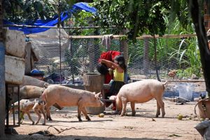 Gracias a ayuda externa, desde 2021 en la comunidad también se crían chanchos. La venta de cerdos significa un importante aporte económico, pero estos animales disputan el espacio con los comunarios. En la casa de Adela tuvieron que poner una tranca porque el cerdo llegaba al patio, donde está la cocina, y hacía caer los utensilios. Algo similar le pasa a Fátima Lipe, quien muchas veces despierta con la chancha al lado de su cama.