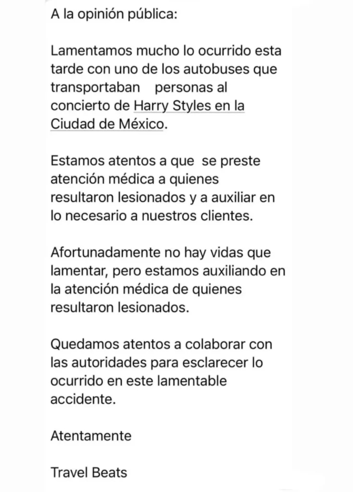 El autobús trasladaba a 50 personas que se dirigían al Foro Sol de la Ciudad de México y contrataron a la empresa Travel Beats.