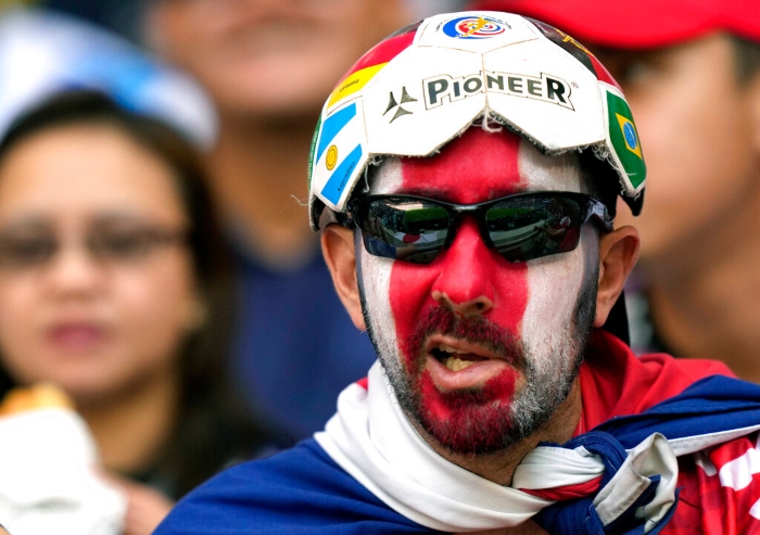 Un aficionado de Costa Rica durante el partido del Grupo E del Mundial que enfrentó a su equipo con Japón, en el estadio Ahmad Bin Ali en Rayán, Qatar, el 27 de noviembre de 2022. Foto: Darko Bandic, AP.