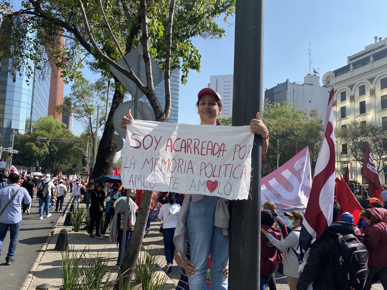 [yotube LS3uvFagTA8]Ese espíritu fue resumido en una pancarta por Miguel Cruz, venido por su cuenta en autobús desde la Mixteca oaxaqueña y quien se plantó sobre el Paseo de la Reforma: “Soy indio parta rajada, pero con los pies limpios y fuertes para marchar por la democracia y apoyo a la 4T.”
