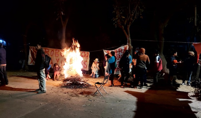 En una pared del poblado, con letras negras pintadas, se advirtió: "No somos excusado de otros pueblos. El agua es vida y se defiende. Fuera golpeadores".
