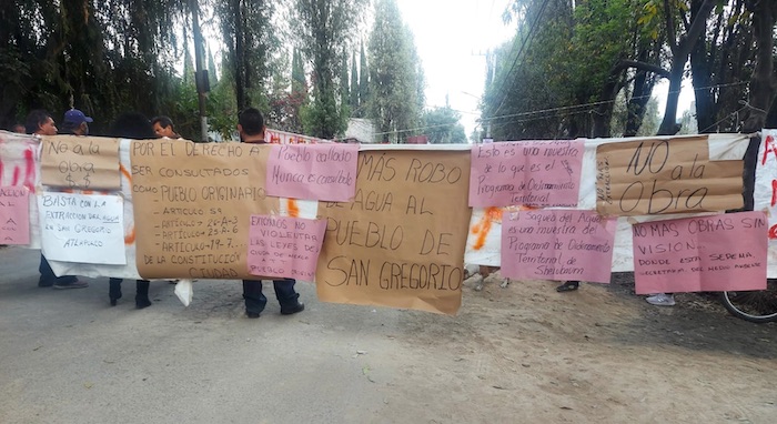 Durante la protesta del jueves 24 de noviembre, los locatarios mostraron carteles con los que exigieron su derecho a la consulta informativa y manifestaron su rechazo al "robo" de su agua. El temor de la extracción deriva en que la obra sigue la ruta de los pozos de agua de los pueblos de San Luis Tlaxialtemalco, San Gregorio Atlapulco y Santa Cruz Acalpixca.