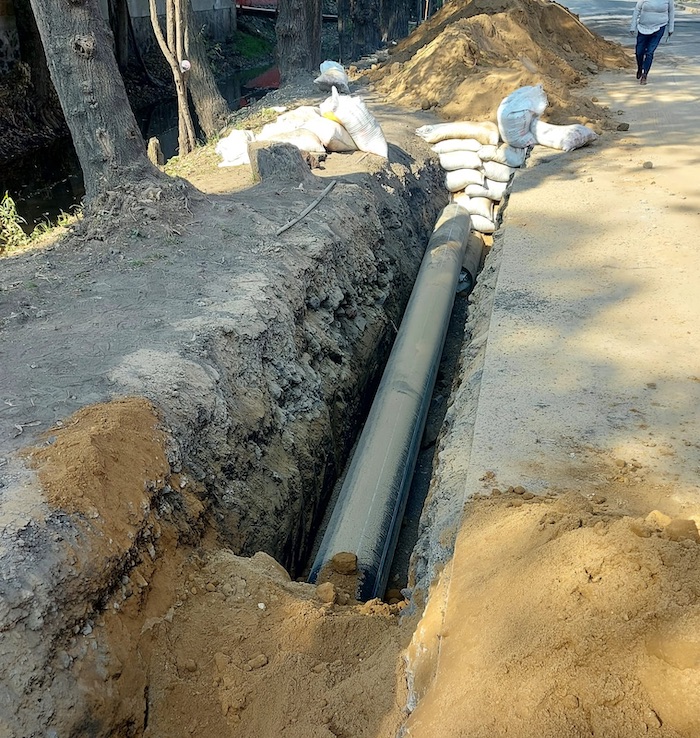 Otra locataria acusó: "La obra en avenida Nuevo León es una tubería de agua potable que quieren hacer pasar como de drenaje, pero puede conectarse al agua que viene de nuestros pozos sabiendo que San Gregorio es un pueblo que ha tenido ya, como parte de las consecuencias se la sobreexplotación, el agrietamiento".
