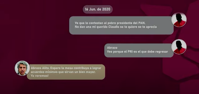 En las conversaciones difundidas esta noche por la Gobernadora Layda Sansores se lee cómo Claudio X. González organiza a los dirigentes de los partidos PAN y PRI para formar una alianza política.