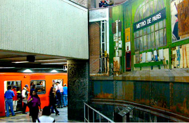 La idea del “Rafael mexicano” fue representar aspectos típicos, tanto materiales como culturales, de los metros de Londres y de París (los más antiguos del mundo) para acompañar a los usuarios del Metro de una manera que atraviesa el tiempo y el espacio junto a personajes fantasmales que también esperan la llegada del tren en medio del deterioro.
