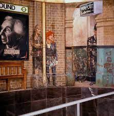 El mural Escenarios subterráneos. Metro de Londres- Metro de París, de Cauduro se inauguró el 15 de octubre de 1990 en la estación Insurgentes, Línea 1, la Línea Rosa.