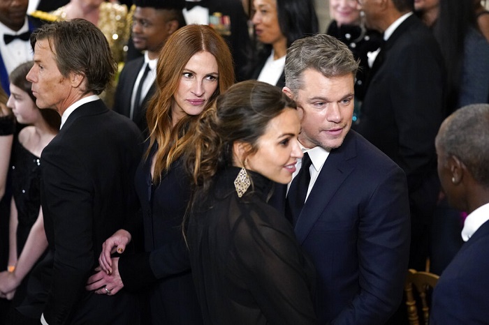 Damon sacó a relucir su lado cómico, bromeando sobre la ocasión en que Clooney le robó papelería al entonces Presidente Bill Clinton y les escribió notas a otros actores. Cheadle, por su parte, resaltó la labor filantrópica de Clooney.