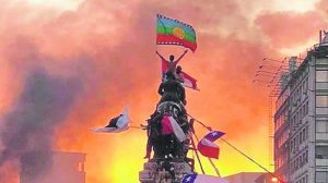 Foto 1: Bandera mapuche. Fotógrafa: Susana Hernández. Tomada por la autora de https://ciperchile.cl/2019/11/04/la-bandera-mapuche-y-la-batalla-por-los-simbolos/