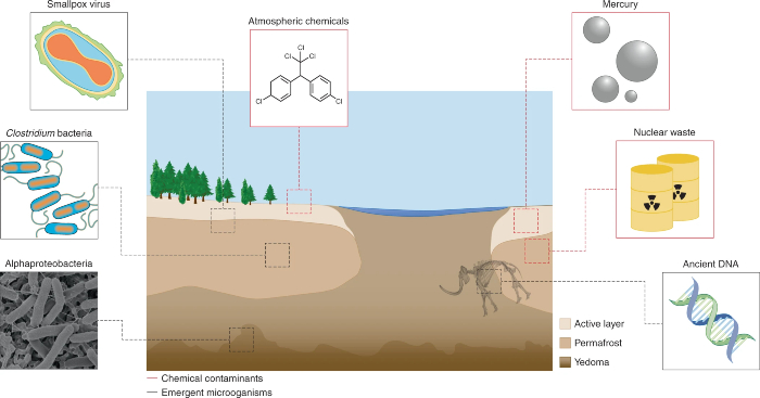 Dentro del permafrost se han acumulado, a lo largo de ciento y miles de años, una serie de materiales bioquímicos, así como materia orgánica que, debido a que han estado congelados bajo ciertas condiciones desde tiempos incluso prehistóricos, no ha estado en contacto con el mundo moderno.