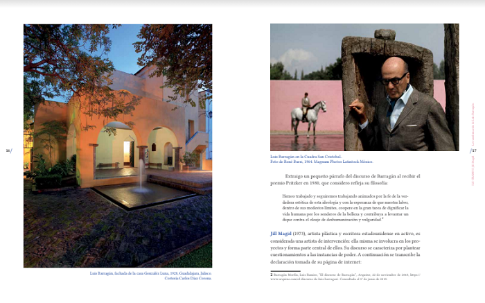 Laura se plantea preguntas complejas en torno a la transformación de Luis Barragán, que termina por resolver brillantemente. Sin embargo, antes de avanzar en ellas, Laura nos sitúa frente a lo sublime de la obra del arquitecto, su orientalismo, el carácter de su encrucijada arquitectónica, que resuelve de manera moderna en una síntesis del México vernáculo, de la atmósfera del Magreb y del paisaje florido de Andalucía. Con este perfume la autora nos introduce poco a poco al complejo laberinto de la obra de Jill Magid, así como de su exposición Una carta siempre llega a su destino, los archivos de Luis Barragán producida por el Museo Universitario de Arte Contemporáneo de la UNAM.