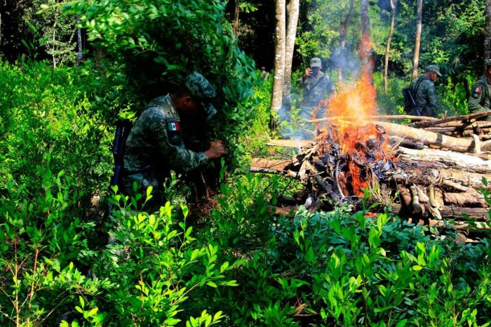 El General también destacó que los soldados a diario hacen recorridos por tierra y aire en los municipios de Atoyac y Tecpan de Galeana con apoyo del Décimo Batallón Motorizado, perteneciente a la Primera Región Militar y detalló que los plantíos de la hoja ilícita están en los municipios de Tecpan de Galeana y Atoyac de Álvarez.