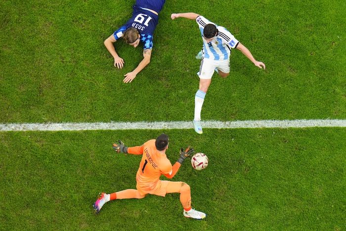 El segundo gol albiceleste generó aún más desconcierto entre los croatas y un par de minutos más tarde, Argentina estuvo a punto de poner el último clavo en el ataúd balcánico, pero Livaković evitó el tercer gol rival tras un remate de cabeza de Mac Allister.