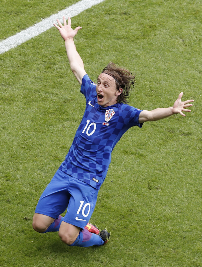 El croata Luka Modric tras marcar el primer gol en el partido contra Turquía por el Grupo D de la Eurocopa en París. Foto: AP.
