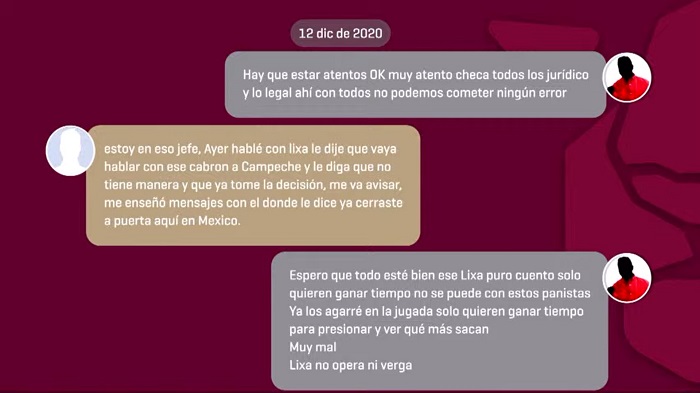 Ciudad de México, 13 de diciembre (SinEmbargo).– La Gobernadora de Campeche Layda Sansores expuso en su programa “Martes del Jaguar” una serie de chats en donde se leen conversaciones entre Alejandro Moreno Cárdenas, líder del Partido Revolucionario Institucional (PRI), un personaje llamado Pablo y José Elías Lixa Abimerhi, quien fue Diputado federal del Partido Acción Nacional (PAN) por Yucatán en la LXIV Legislatura, del 2018 a 2021.