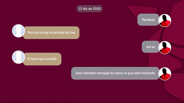 Pablo: Estoy en eso, jefe. Ayer hablé con lixa, le dije que vaya a hablar con ese cabrón a Campeche y le diga que no tiene manera y que ya tome la decisión, me va a avisar, me enseñó mensajes con él donde dice que ya cerraste la puerta aquí en México.