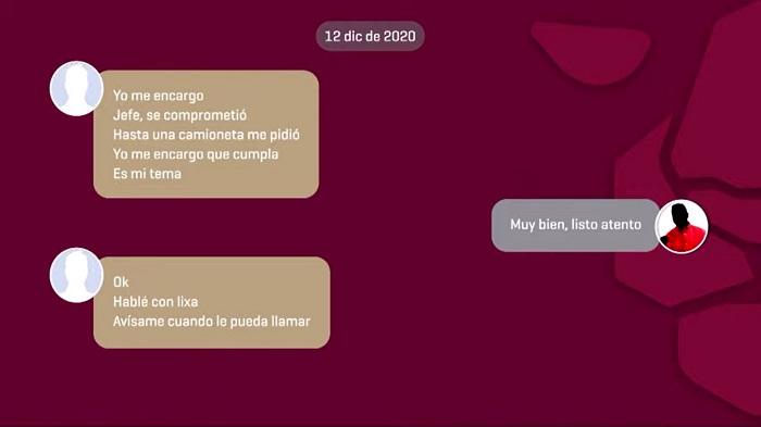 En las conversaciones difundidas se puede entrever de un supuesto soborno (camioneta) a cambio de unos acuerdos.