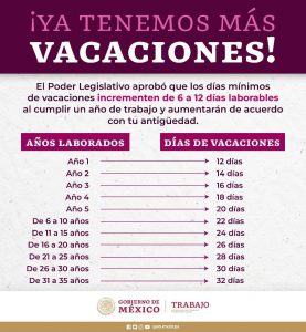 Vacaciones correspondientes conforme a los años laborales. Foto: Gobierno de México