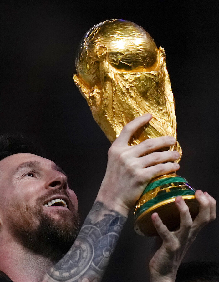 Lionel Messi, de la Selección argentina, alza la Copa del Mundo luego de ganar en penales la final ante Francia en Lusail, Qatar, el domingo 18 de diciembre de 2022. Foto: Petr David Josek, AP