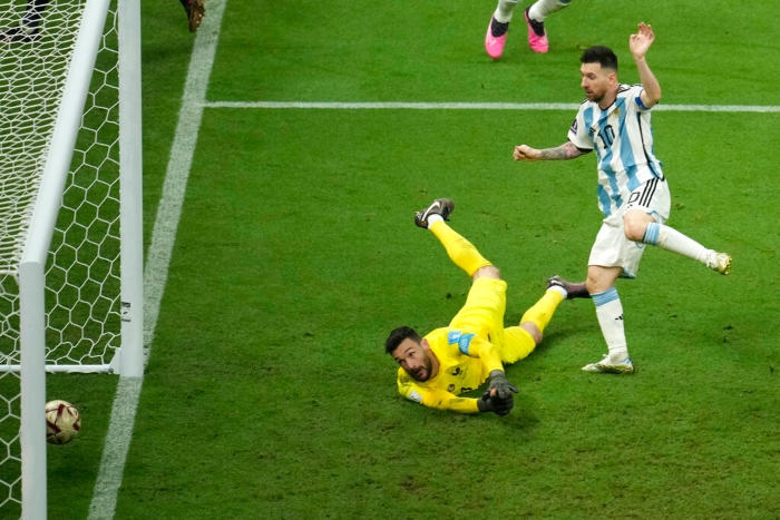 En la final, Messi abrió la cuenta de penal a los 23 minutos y luego puso otra vez en ventaja a los suyos en el tiempo extra al capitalizar un rebote del arquero Hugo Lloris tras el remate de Lautaro Martínez. En la tanda de penales, el astro paró varios corazones compatriotas: ejecutó de zurda un tiro rasante que entró en cámara lenta.