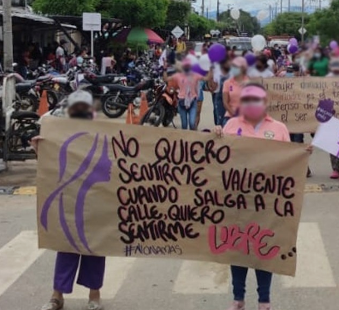 Residentes de Tibú marchando en contra de los feminicidios ocurridos en el municipio. Foto: Habitantes de Tibú vía InSight Crime