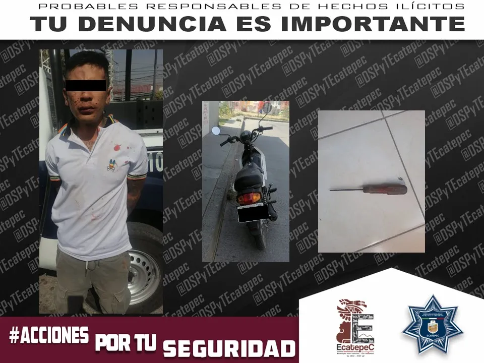 Los oficiales fueron abordados por una mujer, quien señaló al sujeto frente a ella, como el responsable de momentos antes amagarla con un arma blanca para desapoderarla de su motoneta, por ello, los oficiales le indicaron al sujeto la acusación que existía en su contra, realizándole una inspección, los oficiales encontraron un arma blanca con la que presuntamente logró su cometido.
