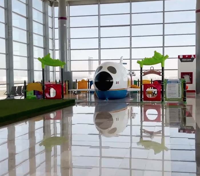 En el Felipe Ángeles también hay áreas de juegos infantiles, unas están en los extremos y otra en medio. En una de ellas está habilitado un avión para que los más pequeños puedan jugar mientras la familia espera que salga su vuelo.