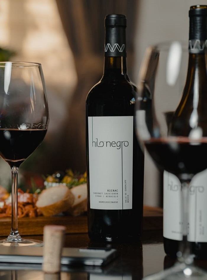 Ricrac de Hilo Negro: Hilo Negro es una vinícola que inicia su trabajo en 2012 en Valle de Guadalupe, y están dedicados a la crianza de vinos que muestren aptitud sobresaliente en cada uno de sus productos. Ricrac es una mezcla perfecta entre uva Nebbiolo, Syrah, Cabernet Sauvignon, que ofrece un apetitoso perfume a fruta roja y especias. Con un año de añejamiento en barricas francesas y americanas, encontrarás un vino elegante, intenso con notas de vainilla y caramelo que dejará una sensación aterciopelada en tu boca. Este vino va espectacular con platos de cocina mexicana como un buen pozole.