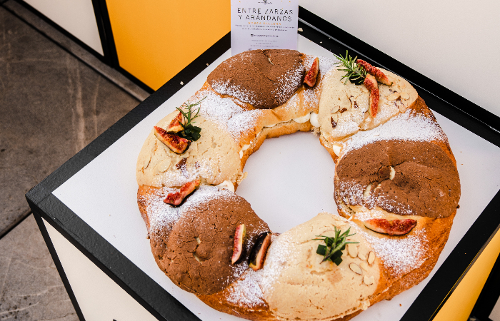 2do lugar: Entre Zarzas y Arándanos - Rosca con un toque de cacao, rellena de crema de mascarpone con chocolate blanco e higos macerados
