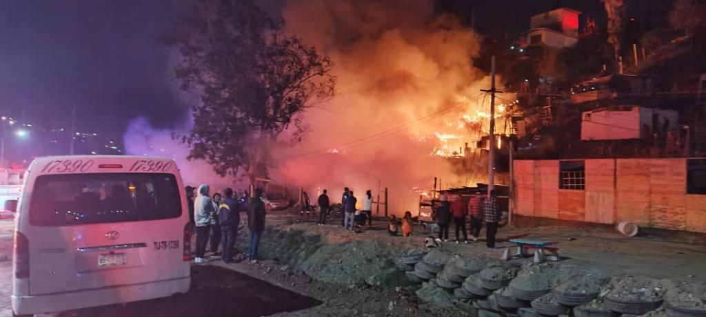 Tijuana, 25 de diciembre (ZETA).- La noche del sábado 24 de diciembre se reportó un incendio en el área conocida como invasión en las inmediaciones del Libramiento Rosas Magallón en Tijuana, en donde resultaron 15 viviendas afectadas, 13 de ellas con daños totales.