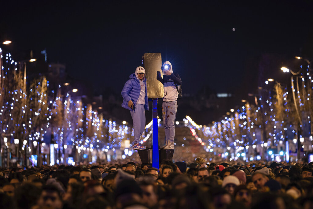 En París, miles celebraron en los Campos Elíseos, mientras el Presidente francés Emmanuel Macron prometía en un discurso de Año Nuevo televisado seguir apoyando a Ucrania.