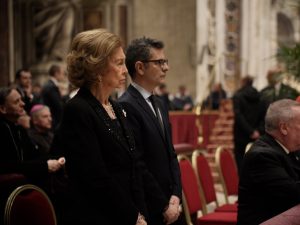 La Reina Sofía de España y los reyes de Bélgica son los tres monarcas que acudirán este jueves 5 de enero al funeral de Benedicto XVI, oficiado por el Papa Francisco junto a más de 120 cardenales, cerca de 400 obispos y unos tres mil 700 sacerdotes en la plaza de San Pedro del Vaticano, así como nueve jefes de Estado y cuatro primeros ministros.