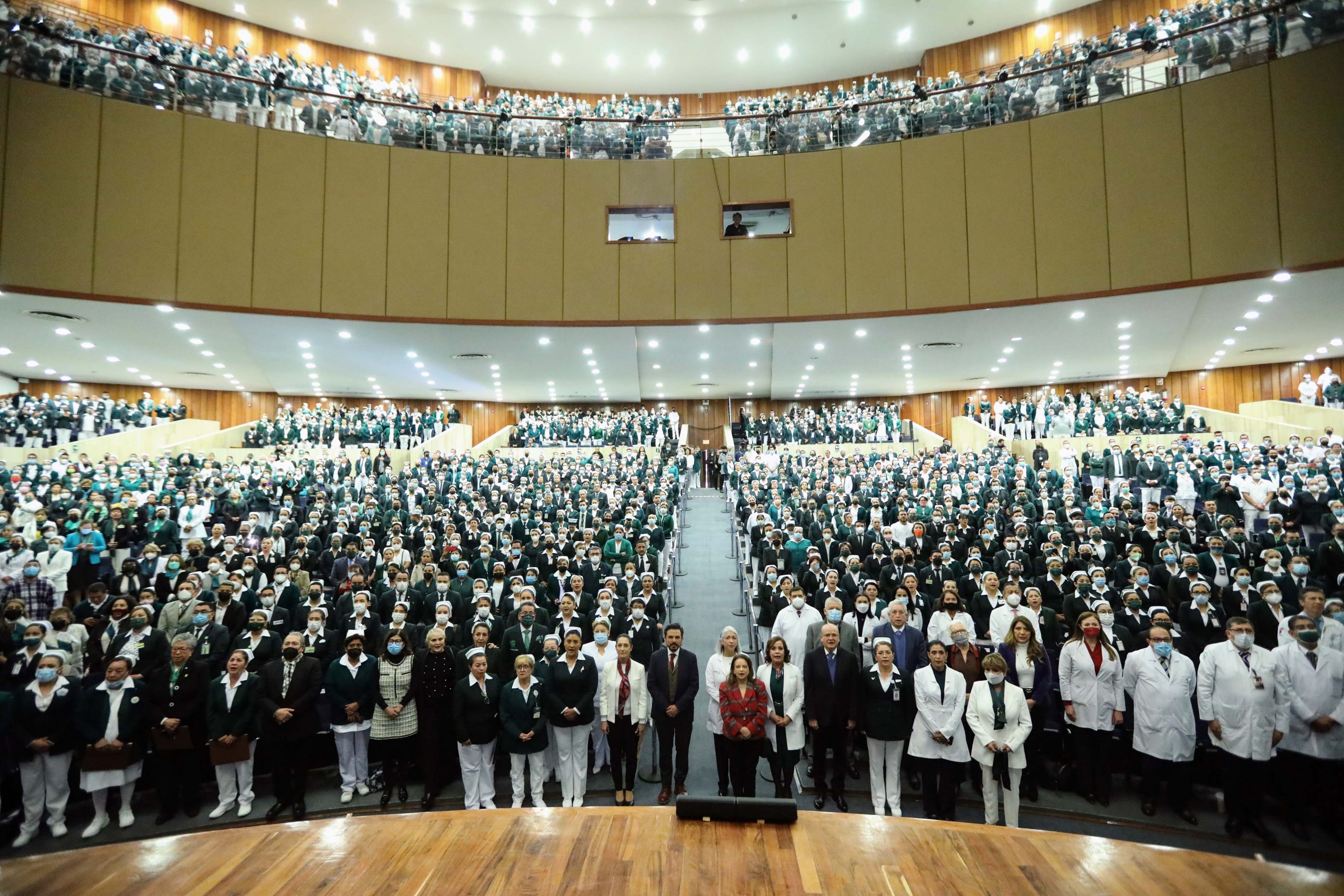 Por su parte, la jefa de Gobierno, Claudia Sheinbaum Pardo, reconoció la labor de los más de 130 mil hombres y mujeres que han dedicado su vida a esta profesión, con la entrega de reconocimientos por antigüedad al personal del IMSS.