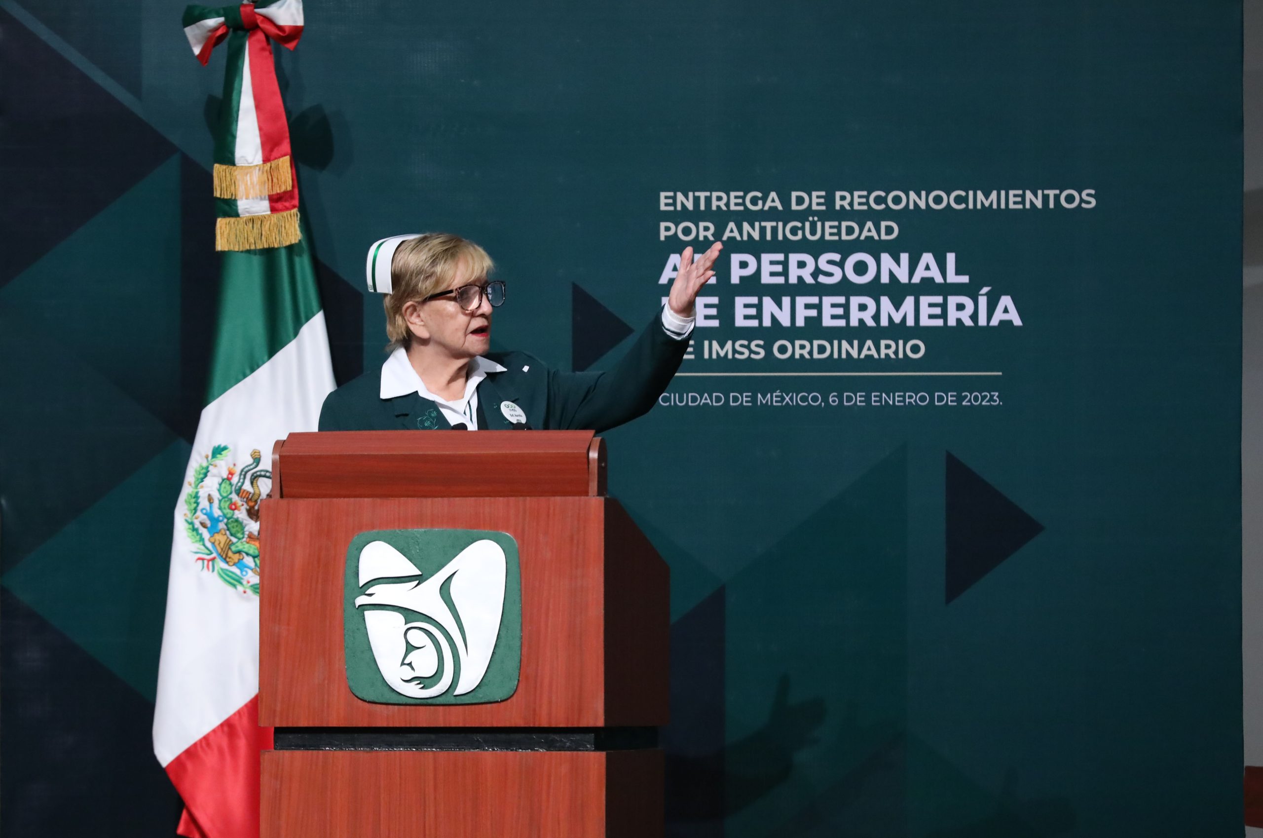 Durante la “Entrega de reconocimientos por antigüedad al personal de Enfermería de IMSS Ordinario”, en la Unidad de Congresos del Centro Médico Nacional (CMN) Siglo XXI, Zoé Robledo informó que el Seguro Social forma a dos mil 250 nuevos profesionales en las siete escuelas con las que cuenta y en atención a la NOM-019 para la Práctica de Enfermería en el Sistema Nacional de Salud, este jueves 5 de enero se instalaron las mesas de trabajo con el Sindicato Nacional de Trabajadores del Seguro Social (SNTSS) para hacer efectivo el reconocimiento de la licenciatura en Enfermería.