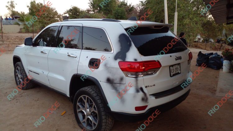 Justo afuera hay una Suburban y una Volkswagen. Todos los vehículos quedaron tiroteados.
