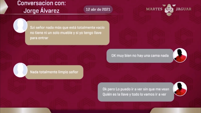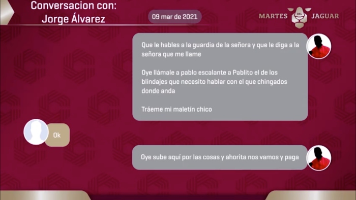 En una primera tanda de conversaciones, reveladas esta noche en el programa "Martes del Jaguar", se leen mensajes de “Alito”, como se le conoce al líder del PRI, con su chofer, a quien le dice teniente.