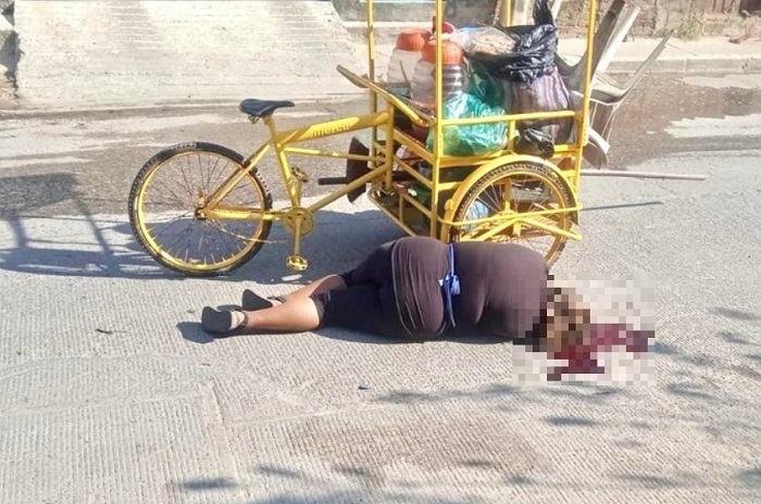En la fotografía, que ya circula en redes sociales, se puede ver a la mujer tendida en el piso, de espalda, con el charco de sangra debajo de ella. Al lado, está su carrito en el que vendía las aguas frescas.