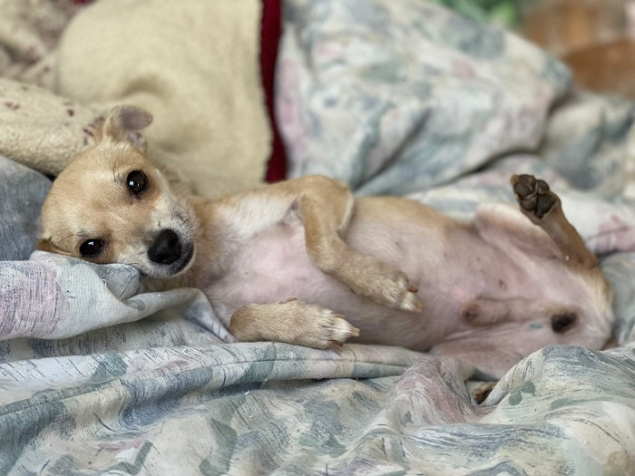 Lo llevé al veterinario, le aplicaron medicamento y luego llegamos a casa, esa noche comió como si nunca hubiera comido en su vida, lo tuvimos en cuarentena para que mejorara antes de introducirlo a la manada. Después de casi un mes ya lo juntamos y ahora ya es parte de una familia, su carita cambió, ya no se ve como un perrito triste y sin esperanza, ahora se ve que se siente amado, su colita ya se mueve como rehilete y cada vez nos ve salta como loco.