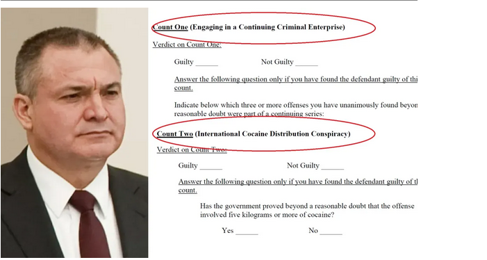 García Luna enfrenta cinco acusaciones, siendo la principal el liderar una empresa criminal durante un largo periodo, además de tres por conspiración para el tráfico de cocaína y una más por falso testimonio ante autoridades migratorias.