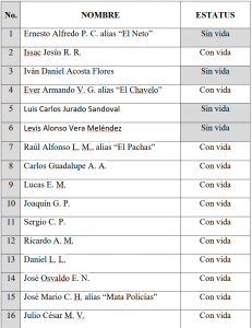 En su listado, la Fiscalía estatal detalló que hasta el momento 12 reos ya fueron rehaprendidos, pero continúan con las labores de seguridad para saber dónde se encuentran las otras 14 personas evadidas, y si están con vida, trasladarlos nuevamente al penal de Ciudad Juárez.