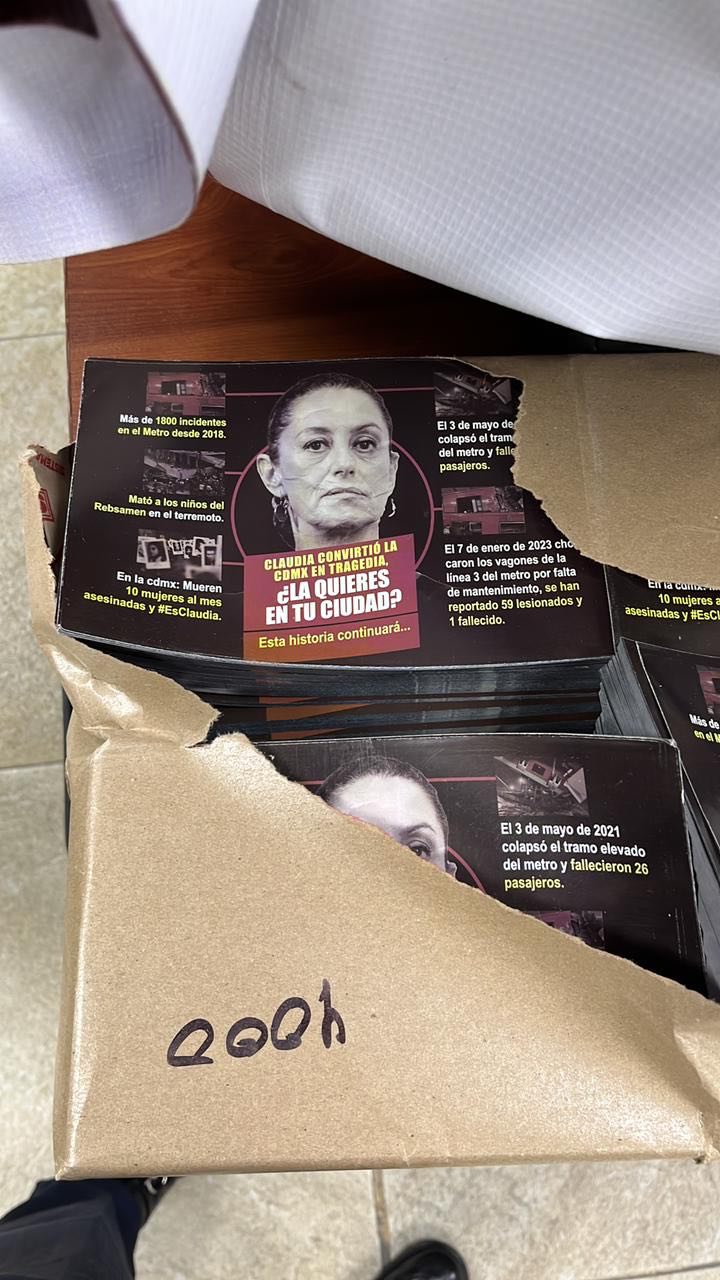 “Claudia convirtió la CDMX en tragedia, ¿la quieres en tu ciudad?”, se puede leer en uno de los materiales impresos.