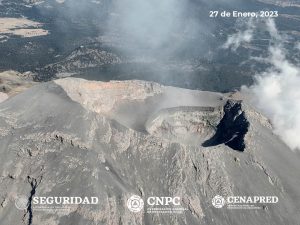 Puebla, 28 de enero (AmbasManos).- El Centro Nacional de Prevención de Desastres (Cenapred) realizó un sobrevuelo y tomó fotos del cráter del volcán Popocatépetl tras la actividad que ha registrado el coloso en los últimos días.