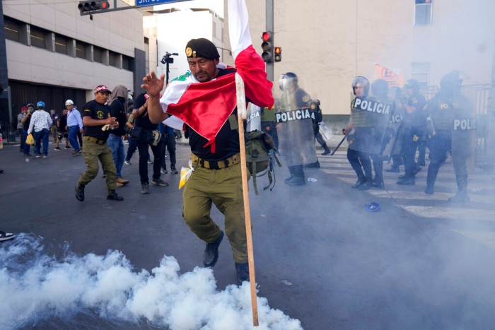 Lima, 30 de enero (AP) — Cuando los policías arrojan gases lacrimógenos a los manifestantes que exigen la renuncia de la Presidenta peruana Dina Boluarte, la mayoría de éstos se aleja corriendo.