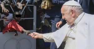 En la imagen puede apreciarse a un niño que, a través de una verja que lo separaba de la calle por la que pasa el Pontífice, se desplazaba en silla de ruedas, para entregarle un billete de 0.007 euros.