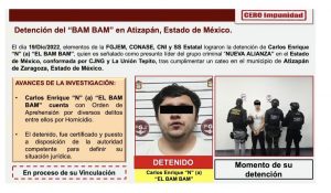 Carlos Enrique "N", alias "Bam Bam", presunto líder de "La Nueva Alianza", fue capturado en diciembre, sólo unos días después de la aprehensión de Nicanor "N" y/o Javier "N", alias "Zarigüeya", otra cabeza del cártel, quienes fueron ingresados al penal de Tlalnepantla, donde enfrentan procesos legales.