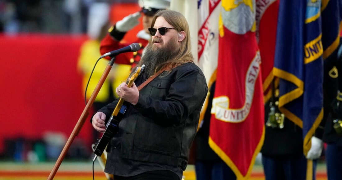 El astro del country Chris Stapleton interpretó de manera sencilla el himno nacional estadounidense de pie solo en el campo, acompañado únicamente por su guitarra eléctrica para entonar “The Star Spangled Banner”, momentos antes de que los Chiefs de Kansas City dieran la patada de salida ante los Eagles de Filadelfia al comienzo del partido.