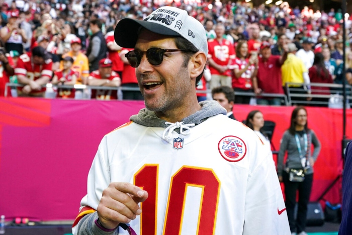 El actor Paul Rudd, un férreo admirador de los Chiefs, estaba en el campo antes del partido, con una gran sonrisa y el jersey del equipo.