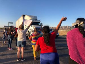 un grupo de mujeres bloqueó de manera intermitente la Carretera Federal 45, conocida como Panamericana, a la altura de la entrada de Samalayuca, Chihuahua, en mayo del año pasado. Foto: Blanca Carmona, La Verdad.